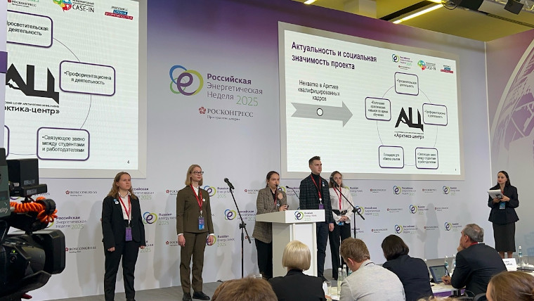 Команда СНО РГГМУ стала финалистом Интерактивной сессии «Проекты молодежных инициатив» Международного форума «Российская энергетическая неделя – 2025»15-17 октября 2025 года в Москве состоялся восьмой Международный форум «Российская энергетическая неделя» - Центральное отраслевое событие года стало яркой демонстрацией перспектив развития отечественного топливно-энергетического комплекса и потенциала международного сотрудничества. Форум прошел при поддержке Правительства Российской Федерации, Минэнерго России и Правительства Москвы. Организатор – Фонд Росконгресс. Деловая программа форума была выстроена вокруг Энергетической стратегии России до 2050 года и сформирована из следующих блоков: нефть, газ, и уголь, цифровые технологии, логистика и транспорт, научно-технологическое обеспечение, энергобезопасность, климатическая повестка. Форум собрал более 7 000 участников из 100 стран. Президент страны Владимир Путин подчеркнул: «Российский энергобаланс - один из самых зелёных в мире. Подавляющая доля электроэнергии в России, а именно 87 процентов, вырабатывается с минимальным или нулевым углеродным следом». Глава государства обозначил ключевые ориентиры развития мировой и отечественной энергетики. Крупнейшая выставка оборудования и технологий ТЭК собрала ведущих производителей, разработчиков и поставщиков технологий со всей России и из-за рубежа. Более 50 ведущих компаний и организаций представили свои прорывные проекты, инновационное оборудование и передовые разработки в сфере электроэнергетики, нефтегазовой, угольной промышленности, атомной отрасли, возобновляемых источников энергии. Госкорпорация «Росатом» продемонстрировала последние достижения в области мирного атома. На площадке форума Госкорпорация «Росатом» и Федеральная служба по гидрометеорологии и мониторингу окружающей среды (Росгидромет) заключили соглашение о стратегическом партнерстве и взаимодействии по вопросам мониторинга радиационной обстановки на территории Российской Федерации в рамках единой государственной автоматизированной системы мониторинга радиационной обстановки. Подписи под документом поставили генеральный директор госкорпорации «Росатом» Алексей Лихачев и руководитель Росгидромета Игорь Шумаков. Ключевая цель сотрудничества – объединение ресурсов и компетенций для обеспечения ядерной и радиационной безопасности. Это позволит сформировать единую информационную систему данных о радиационной обстановке в России, доступную для органов власти и населения. Соглашение позволит выработать единые подходы к оценке радиационных факторов, что важно для принятия взвешенных решений и исключения необоснованных опасений населения относительно вопросов экологического благополучия. В молодежный день форума более 3 тысяч учащихся вузов и школ, а также специалистов ведущих компаний презентовали руководителям органов власти инновационные решения и сформировали молодежную энергетическую повестку на ближайший год. Команда Студенческого научного общества РГГМУ впервые приняла участие в мероприятии с проектом «студенческий центр арктических инициатив «Арктика-центр». Проект направлен на содействие развитию рабочих групп в Арктической зоне России. Команда выступила в Интерактивной сессии по созданию молодежных прое
