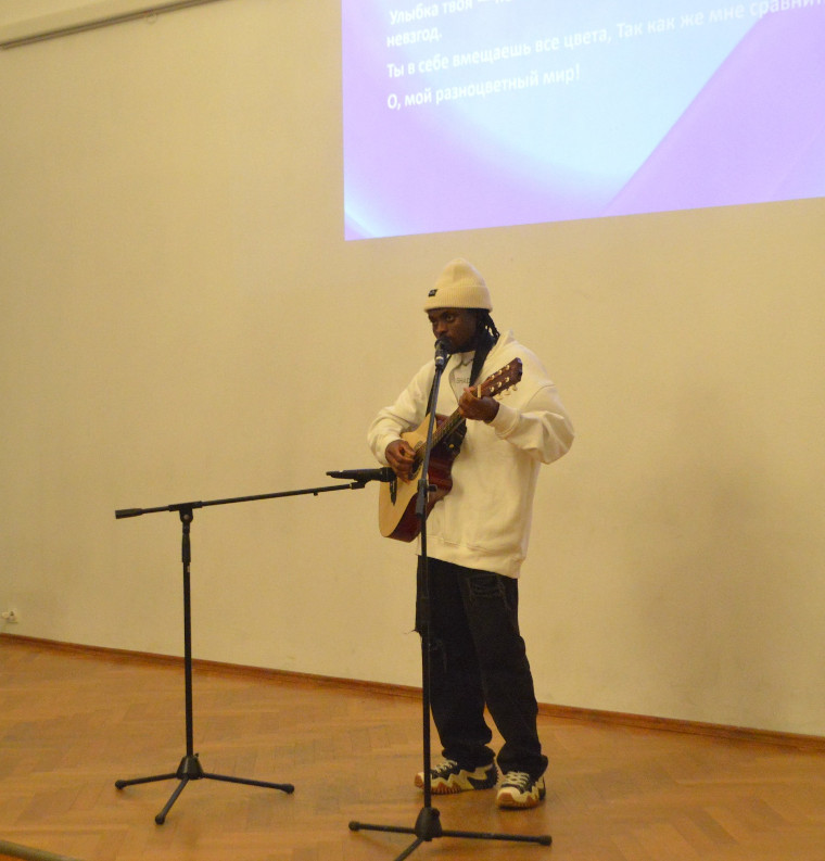 Смотр-конкурс творчества иностранных студентов «Творчество без границ»В год единства народов России наш университет входит, ставшим уже традиционным, мероприятием Смотр-конкурс творчества иностранных студентов «Творчество без границ»! 29 января в актовом зале на Рижском, 11 на суд жюри и зрителей были приставлены 14 творческих выступлений иностранных обучающихся в трёх номинациях. Собравшиеся в зале услышали стихи и песни на русском и родных языках исполнителей и увидели народные танцы. В этом году в конкурсе приняли участие: Жугдэрсурэн Бат-Эрдэнэ (Монголия), Галай Искандер (Тунис),Итчман Эстрада Джессика (Куба), Пеньята Отеро Мигель Артуро (Колумбия), Кейвани Парвин (Иран), Талампитие Р.П.Г. Аванти М.Талампития и Дугганна Ралалаге Кавиша (Шри-Ланка), Теклемаркос Меаза Мекаша (Эфиопия),Хаба Нианкой (Гвинея), Хейдари Амин (Иран), Нонгни Маджио Анелка (Камерун), Абдурахаман Джиби Абдулайе (Нигер), Лама Бенжамин (Гвинея), Турэй Алиу (Гамбия) Организаторы смотра-конкурса благодарят всех причастных к этому мероприятию и выражают уверенность, что его участники станут украшением творческих мероприятий разного уровня! ![]() ![]() ![]() ![]() ![]() ![]()