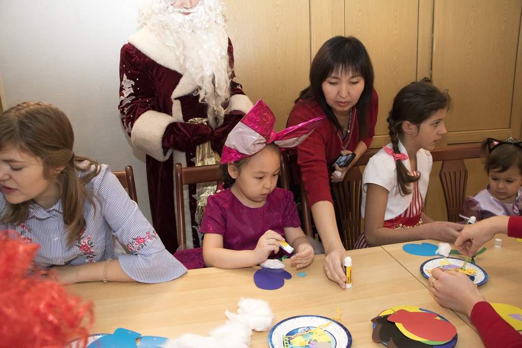 Дед Мороз и Снегурочка, встретив ребят, отправляли их на мастер-класс «Новогодний подарок своими руками». Под чутким руководством студентов института «Полярная академия», обучающихся на кафедре Реставрации живописи, малыши сделали подарки для мам и пап. В этом году это были «волшебные варежки» с новогодним пожеланием и подписью Деда Мороза.