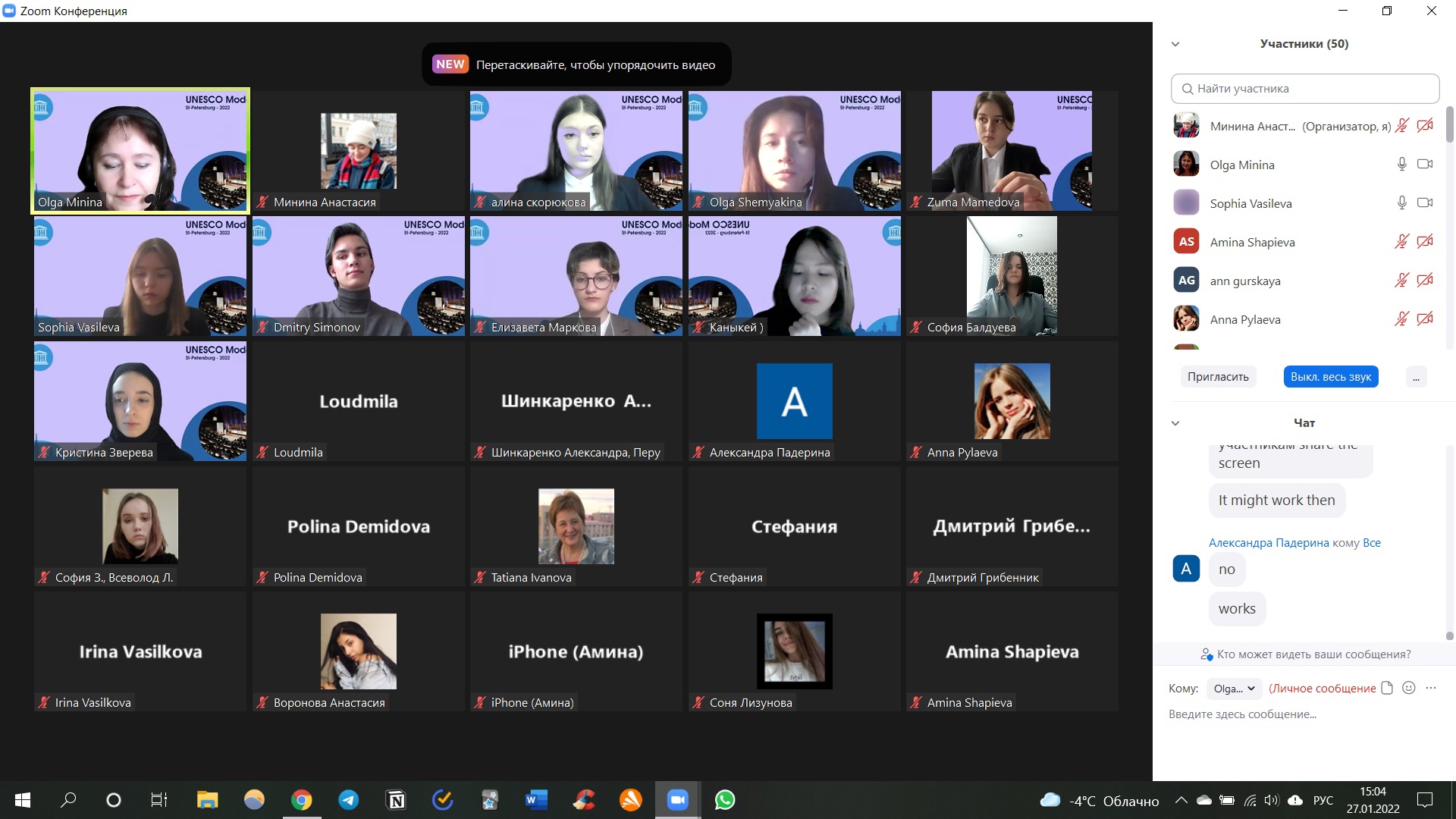Кафедра английского языка и литературы в онлайн формате провела деловую игру на английском языке «UNESCO Model».27 января на базе РГГМУ, кафедры английского языка и литературы института Полярная Академия в онлайн формате прошла деловая игра на английском языке «UNESCO Model». В игре приняли участие студенты кафедры английского языка и литературы Института «Полярная академия» РГГМУ, РГПУ им. А.И.Герцена (в том числе иностранные студенты из Китая), учащиеся СПб ГБПОУ «Петровский колледж», ГБНОУ СПб ГДТЮ «Дружба», учащиеся языковой школы «Большая Перемена» (г.Сыктывкар). В качестве экспертов перед участниками выступили: Второй секретарь Посольства Российской Федерации в Республике Болгария, Секретарь Комиссии по культуре и туризму Межпарламентской Ассамблеи стран СНГ, Заведующий кафедрой ЮНЕСКО в Государственном университете имени Герцена, Президент SPELTA (Ассоциации преподавателей английского языка Санкт Петербурга), Вице-президент Центра социально-экономических и геополитических исследований, эксперт из Канады – проектный менеджер в сфере управления природными ресурсами. Делегатами стран было представлено 18 позиций по различным проблемам сохранения культурного материального и нематериального наследия. Ряд позиций вызвали оживленные дискуссии и вопросы со стороны делегатов. По итогам конференции странами участницами была принята резолюция о мерах, необходимых для сохранения культурного наследия человечества. Речи экспертов и позиции делегатов будут размещены на сайте игры и в социальной сети ВКонтакте https://vk.com/public207458714 ![]() ![]() ![]() ![]() ![]() ![]() ![]() ![]() ![]() ![]()