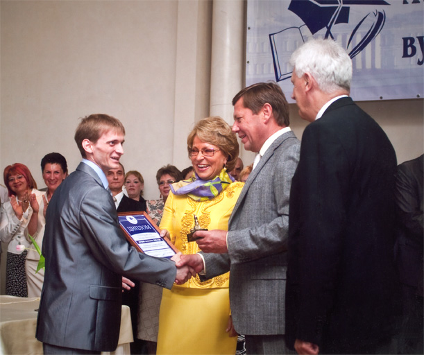 Лучший выпускник гидрометаГубернатор Санкт-Петербурга Валентина Ивановна Матвиенко и председатель Совета ректоров вузов Санкт-Петербурга Владимир Николаевич Васильев наградили в субботу 78 выпускников вузов города и вручили выпускнику метеорологического факультета нашего университета Солодовнику Эдуарду бронзового сфинкса как одному из лучших выпускников петербургских вузов 2009 года. ![]() На церемонии награждения присутствовали члены Правительства Петербурга, ректоры всех городских вузов. В завершение церемонии на набережной Малой Невки в небо была запущена конфедератка (академический головной убор) из воздушных шаров. Имена лучших выпускников назвали Ученые советы вузов, которые учитывали не только успехи своих воспитанников в учебе, достижения в научной и творческой деятельности, но и их участие в общественной жизни вуза. Традиционно выпускников поздравила губернатор В. И. Матвиенко: «Вы не просто получили дипломы. Вы стали лучшими среди выпускников вузов северной столицы. Санкт-Петербург гордится вами и надеется на вас. Впереди у вас интересная насыщенная жизнь. Вы получили прекрасную подготовку по выбранной профессии. За вами – весь огромный потенциал петербургской высшей школы, ее традиции и авторитет. За вами – весь Санкт-Петербург». Выпускникам были вручены бронзовые статуэтки сфинксов (символ Совета ректоров вузов Петербурга) и памятный диплом Правительства города. В их число вошли не только те, кто достиг высоких результатов в учебе, но и имел достижения в научной и творческой деятельности. Среди лучших выпускников 2009 года – чемпион мира среди профессионалов в супер тяжёлом весе по версии Всемирной боксёрской ассоциации Николай Валуев.