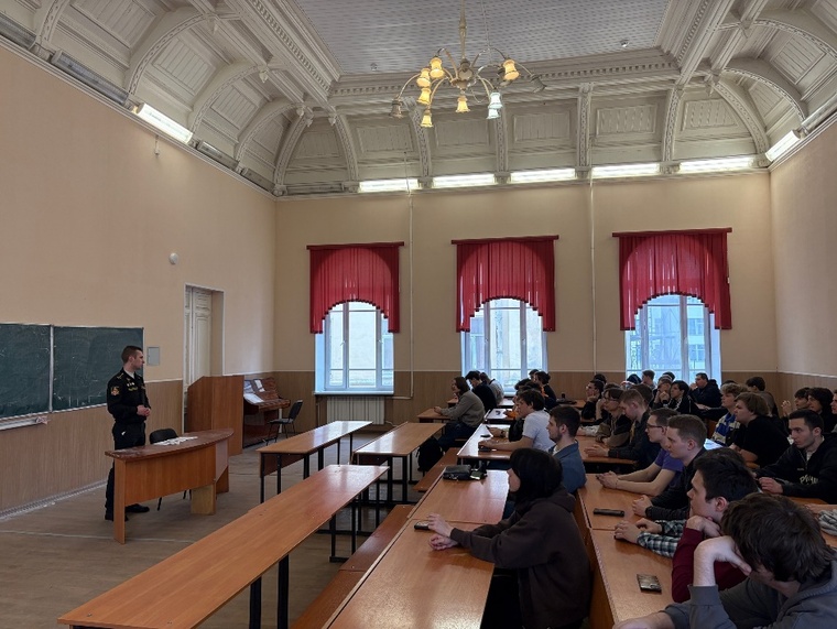 25.03.2026 состоялась беседа проректора по внеучебной и воспитательной работе Ивана Ивановича Палкина, представителей 12 Главного управления Министерства обороны Российской Федерации и представителей военного комиссариата г. Санкт-Петербурга со студентами института информационных систем и геотехнологий, института гидрологии и океанологии, института морского права, экономики и управления, института «Полярная академия», экологического и метеорологического факультетов.